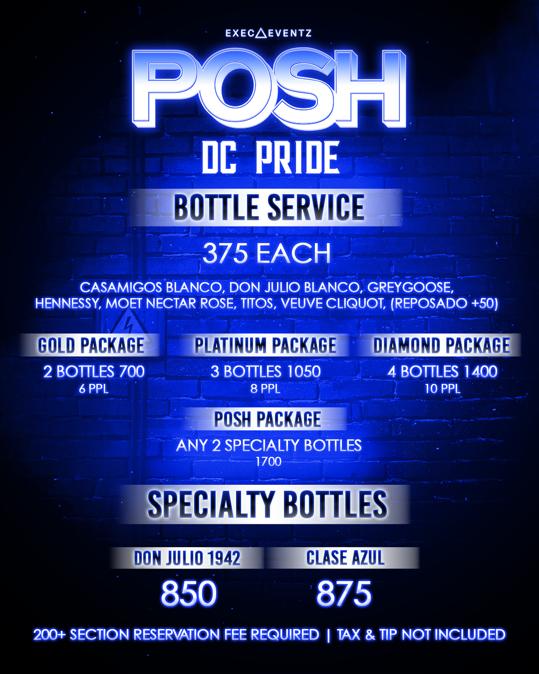 Thank you for your section reservation at POSH DC Pride 2026. Please provide us with the following information.